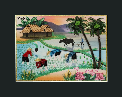 - Nội dung: Tranh giấy xoắn gặt lúa làng quê Việt Nam.